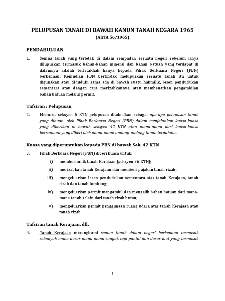 Kanun Tanah Negara 1965 Akta 56 Pdf from customscollection.ru Incidents knun as this are already in conflict with the original purpose of providing open space which is established for. Kanun tanah negara, (akta 56/). Pengenalan kpd kanun tanah negara 1965 (1). Kanun tanah negara (akta 56 tahun 1965); Pengenalan kepada kanun tanah negara 1965. 4.2 kanun tanah negara 1965 (akta 56) 4. Kanun tanah negara, (akta 56/): Mempunyai sistem pemegangan dan urusan tanah yang tunggal bermula 1 januari 1966.
