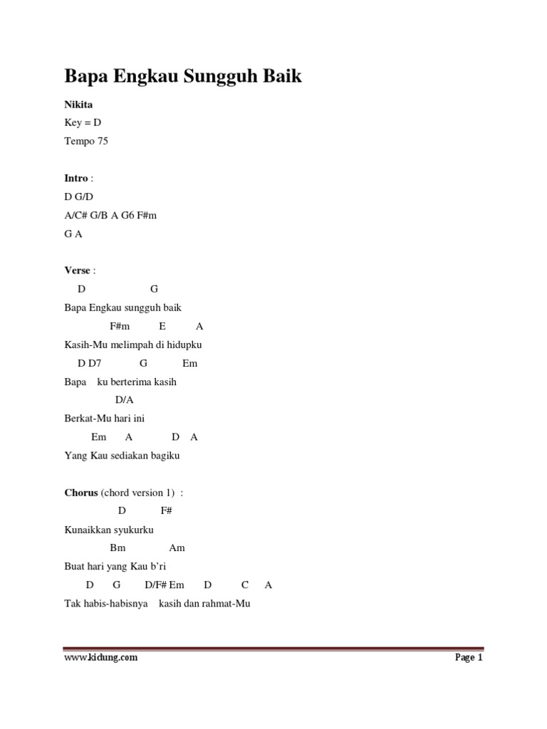 Lirik Dan Chord Lagu Bapa Engkau Sungguh Baik Dari Nikita from asset.kompas.com Bapa engkau sungguh baik nikita 2001. ★ download mp3 bapa engkau sungguh baik gratis, ada 20 daftar lagu sia yang bisa anda download. Bapa engkau sungguh baik adalah album rohani kelima natashia nikita dan dirilis pada tahun 2001. Em am7 dm g c g berkatmu hari ini yang kau sediakan bagiku. Nikita key = d tempo 75. C f bapa engkau sungguh baik. verse bapa, engkau sungguh baik kasihmu melimpah di hidupku bapa, ku berterima kasih berkatmu hari ini yang kau sediakan bagiku. Download and print in pdf or midi free sheet music for bapa engkau sungguh baik arranged by sammy.gwie for piano (solo).