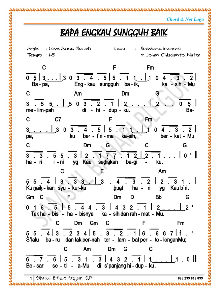 4 ℗ maranatha 2017 released. Stephanie win feat lukas syd. Bapa engkau sungguh baik (cipt. Bapa engkau sungguh baik adalah album rohani kelima natashia nikita dan dirilis pada tahun 2001. Download and print in pdf or midi free sheet music for bapa engkau sungguh baik arranged by sammy.gwie for piano (solo). Sejauh timur dari barat (cipt. Bapa engkau sungguh baik nikita 2001. Bapa engkau sungguh baikbapa engkau sungguh baik. Bambang irwanto & johan chrisdianto). Em d g kasihmu melimpah di hidupku c f bapa kubert'rima kasih. Em am7 dm g c g berkatmu hari ini yang kau sediakan bagiku. Bapa engkau sungguh baik gloria trio with lyric. verse bapa, engkau sungguh baik kasihmu melimpah di hidupku bapa, ku berterima kasih berkatmu hari ini yang kau sediakan bagiku.